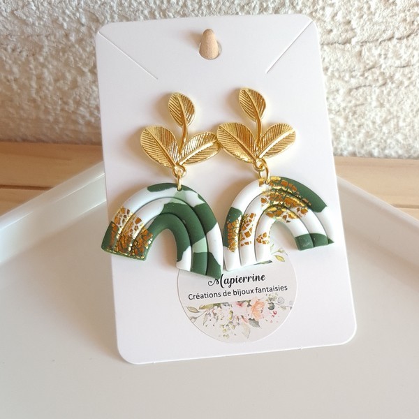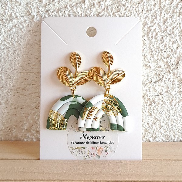 Boucles d'oreilles artisanales en pâte polymère et laiton doré