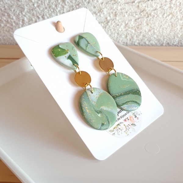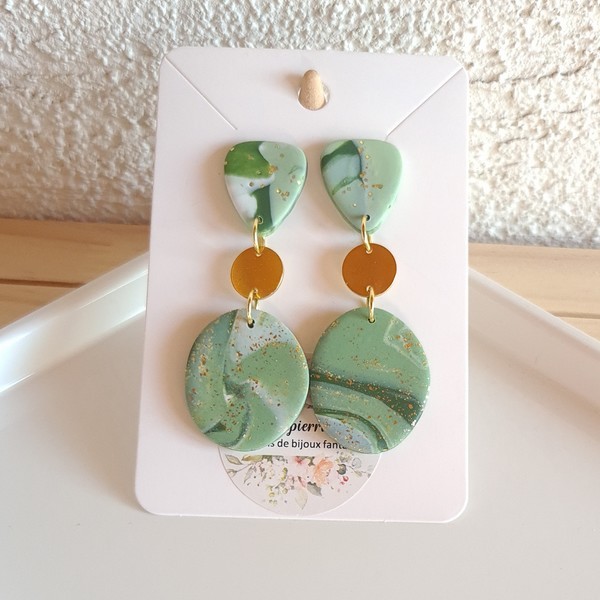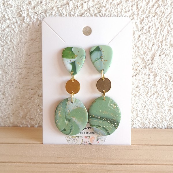 Découvrez ces élégantes boucles d’oreille faites main par Mapierrine-créations, réalisées en pâte polymère et acier inoxydable doré.