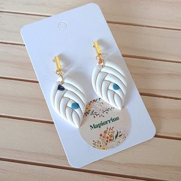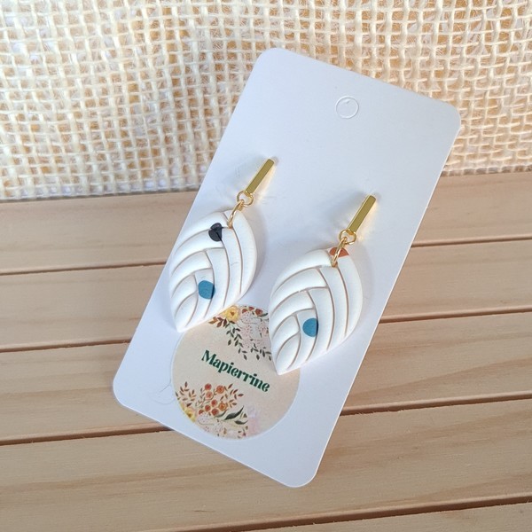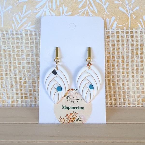 Boucles d’oreilles pendantes en pâte polymère et acier inoxydable, légères, durables et parfaites pour oreilles sensibles, façonnées à la main par Mapierrine‑créations pour mapierrine-mode.com.