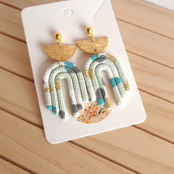 Boucles d’oreilles arc bohème – Pâte polymère & acier inoxydable