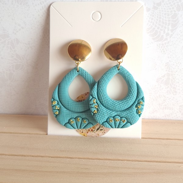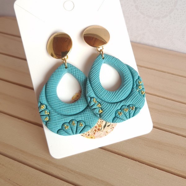 Boucles d’oreille en pâte polymère et acier inoxydable – Création artisanale