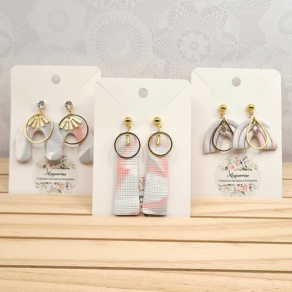 Boucles d’oreilles artisanales en pâte polymère et acier inoxydable, créées et assemblées à la main en France .