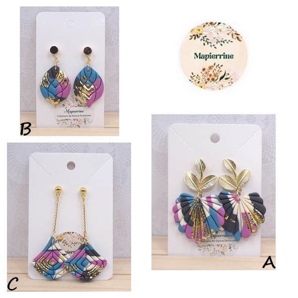 Matériaux : pâte polymère de qualité, acier inoxydable hypoallergénique, garanti sans nickel.
