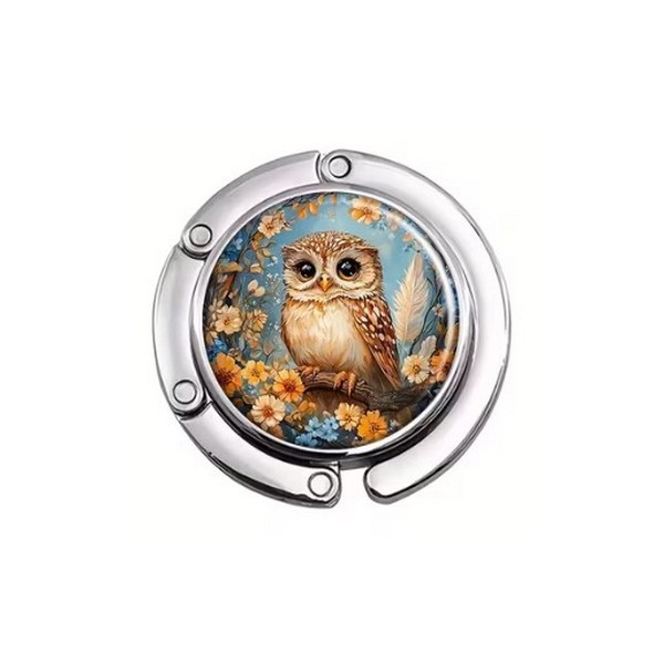 Crochet de sac à main rond pliable pour table 45 x 90 mm CHOUETTE FLEUR