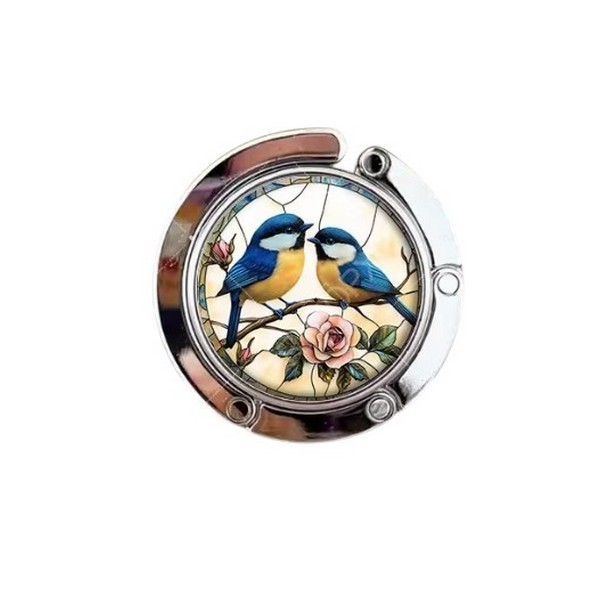 Crochet de sac à main rond pliable pour table 45 x 90 mm FLEUR BLANCHE OISEAU BLEU