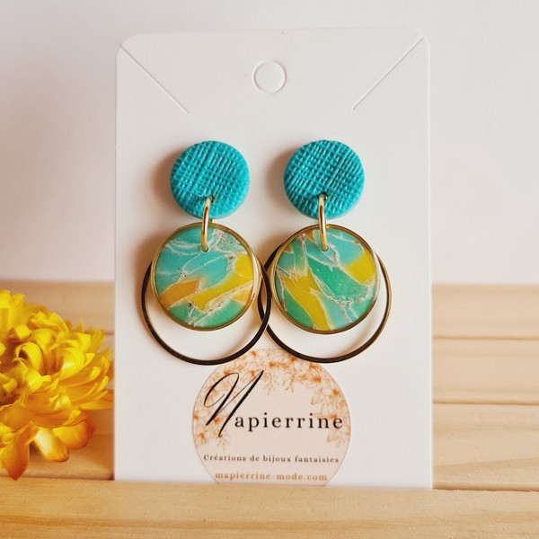 Boucles d’oreilles Pastel Paradisiaque – Turquoise marbré pâte polymère et acier inoxydable, fait main France Mapierrine